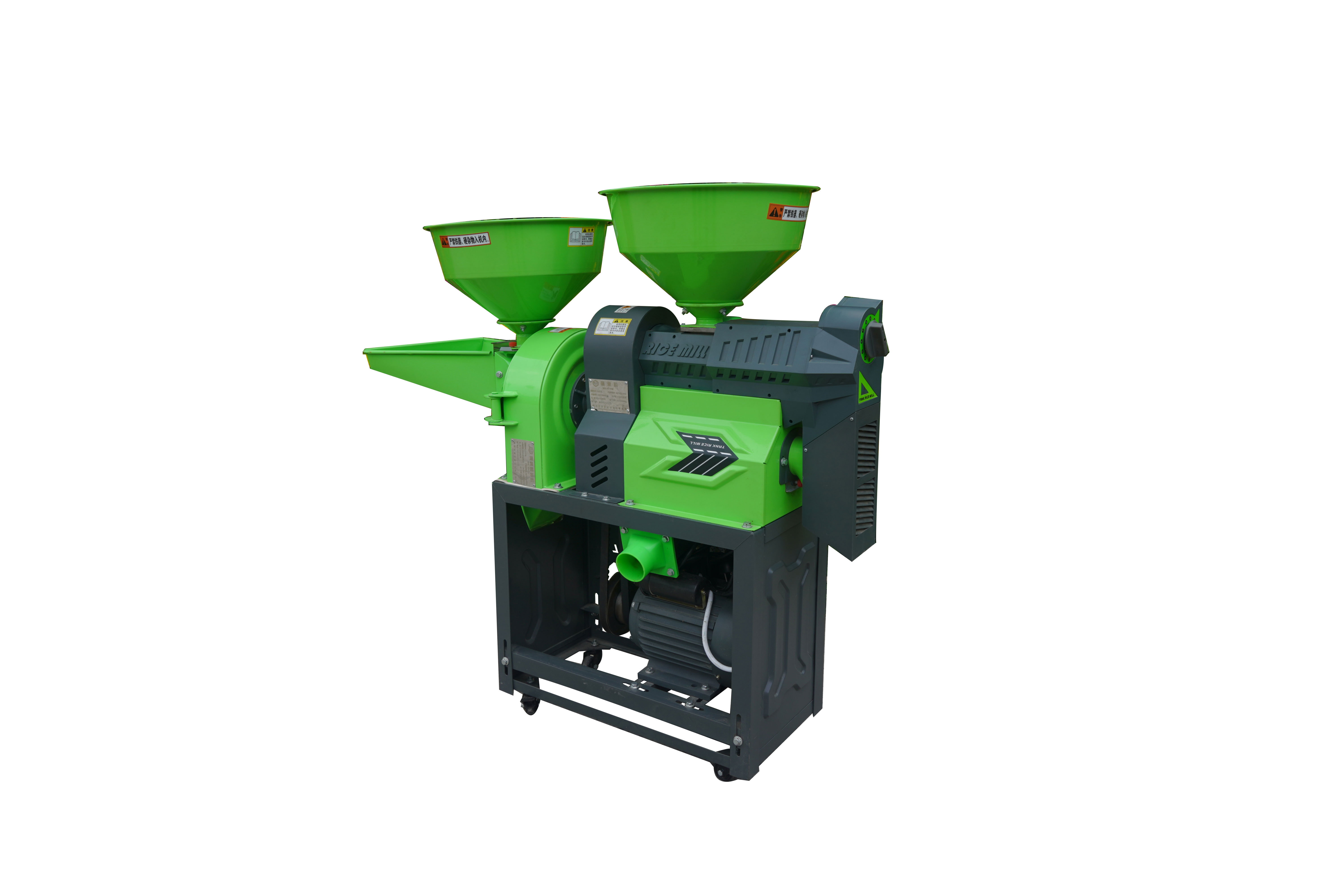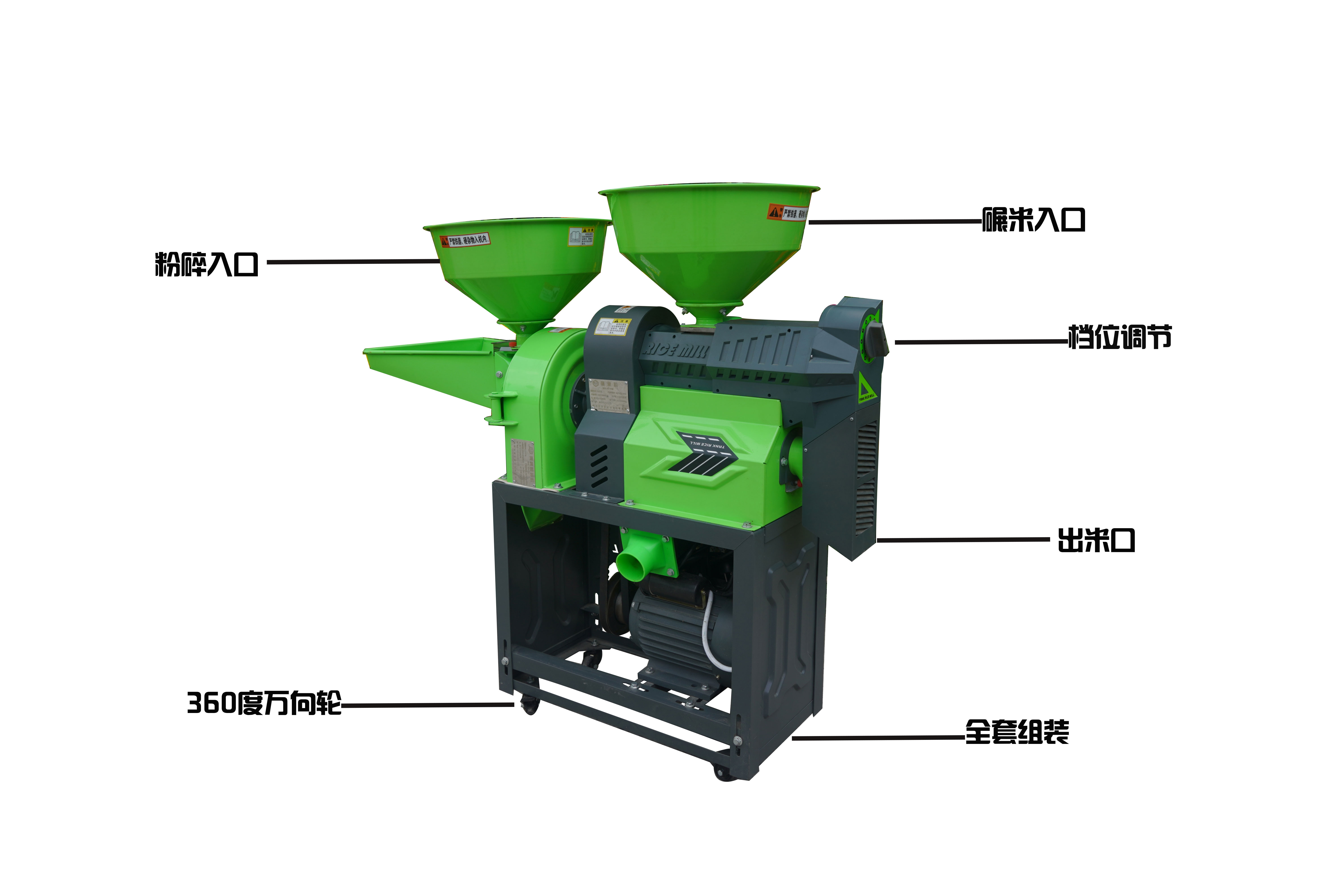 碾米機部分:碾大米 小米 玉米脫皮等,可將稻谷一次加工成大米,無需二次加工。在碾米過程中,同時完成米糠分離,合金鋼米輥更耐用。